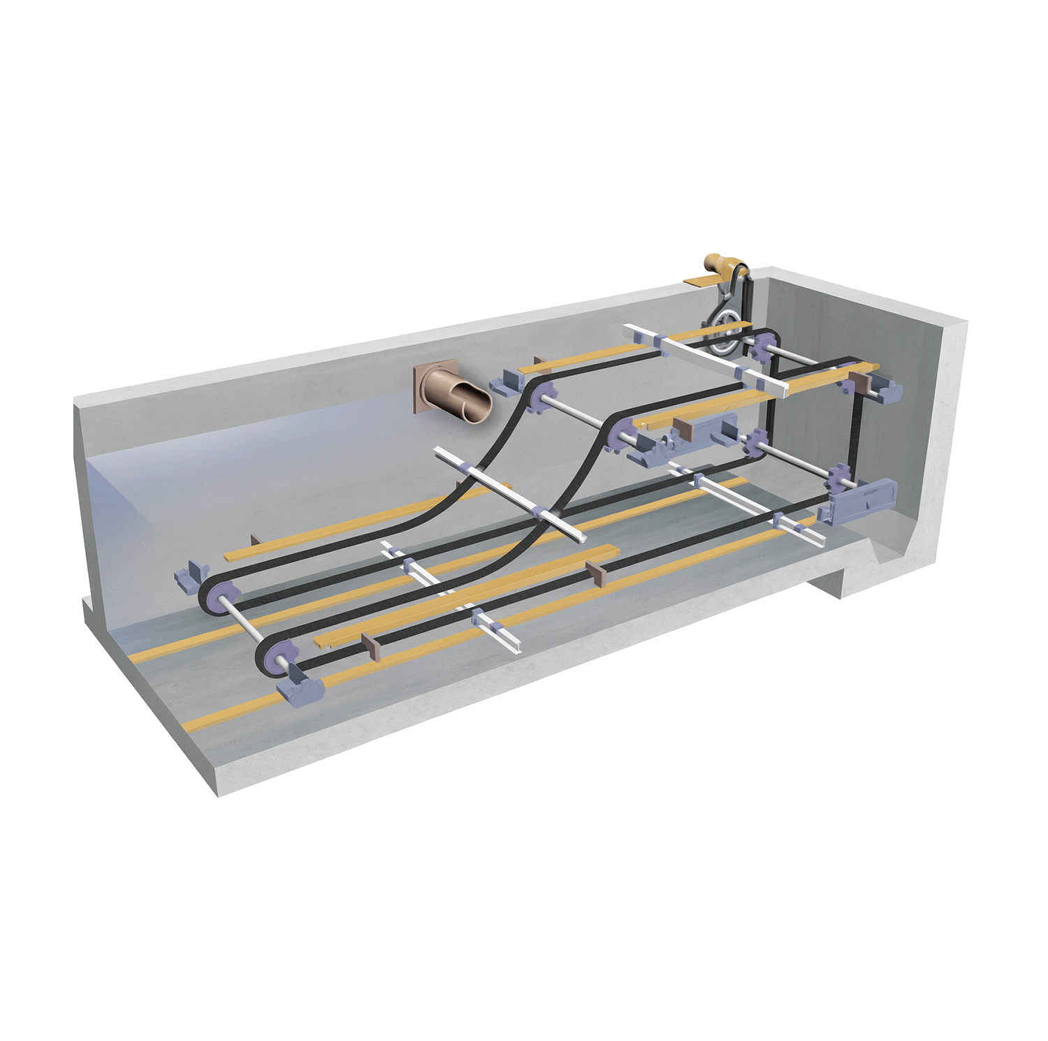Rectangular Collectors are typically a 4-shaft arrangement with sludge being moved in one direction and surface skimming in the opposite direction. If skimming is not required, a 3-shaft arrangement is used. The width and length is adjustable up to 30 feet wide and about 250 feet long.