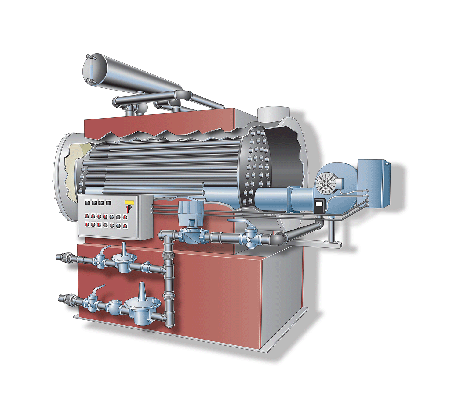 Boilers are provided in 7 sizes, ranging from 270,000 - 2,000,000 BTU/hr, primarily for use in combination boiler / heat exchanger packages. On occasion, they may be used as stand-alone boilers. Fuels used are digester gas with auxiliary natural gas, propane or fuel oil.