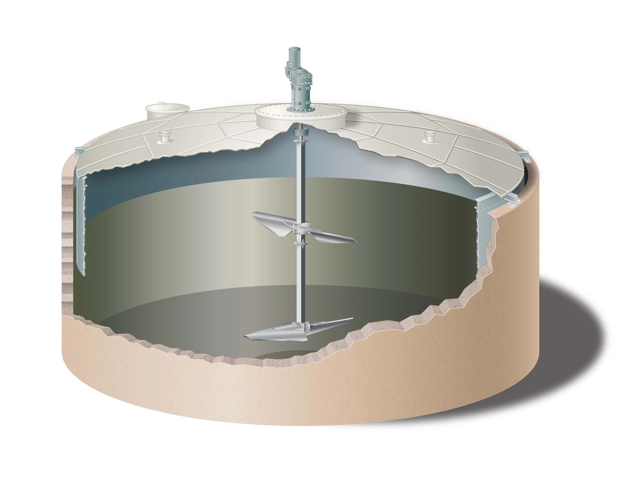 Walker Process offers a cover mounted vertical shaft mixer by STAMO that provides a low energy solution for through maintenance free mixing for anaerobic digesters.